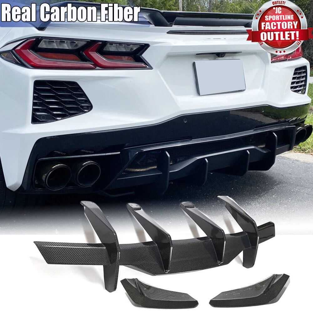 For Chevrolet Corvette C8 21 Real Carbon Rear Bumper Diffuser Lip Side Splitter Ebay